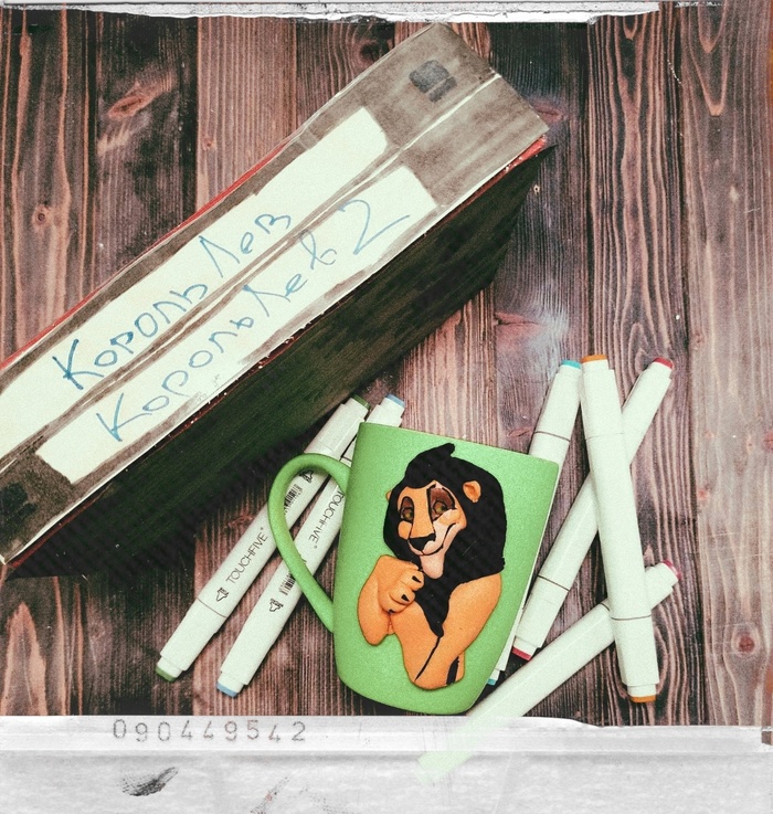 Поступил мне значит запрос на кружечку с персонажем одного из моих любимых мультиков - Король Лев . Обожаю делать мультяшных персонажей, и копилка уже сделанных пополняется. Но случилось одно но....