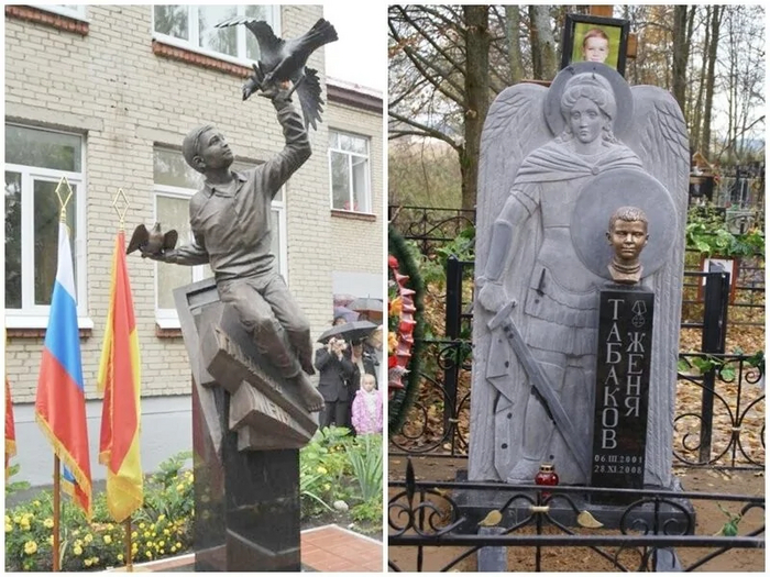 Школа № 83, в которой учился мальчик, была переименована в честь Евгения Табакова, а перед самой школой установлен памятник Жене, где он защищает голубку и отгоняет коршуна.