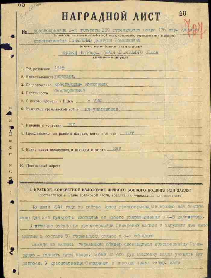 Весной 1942 года летчик-истребитель энского авиаполка сбил свой десятый немецкий самолет и был представлен командованием к званию Героя Советского Союза.
