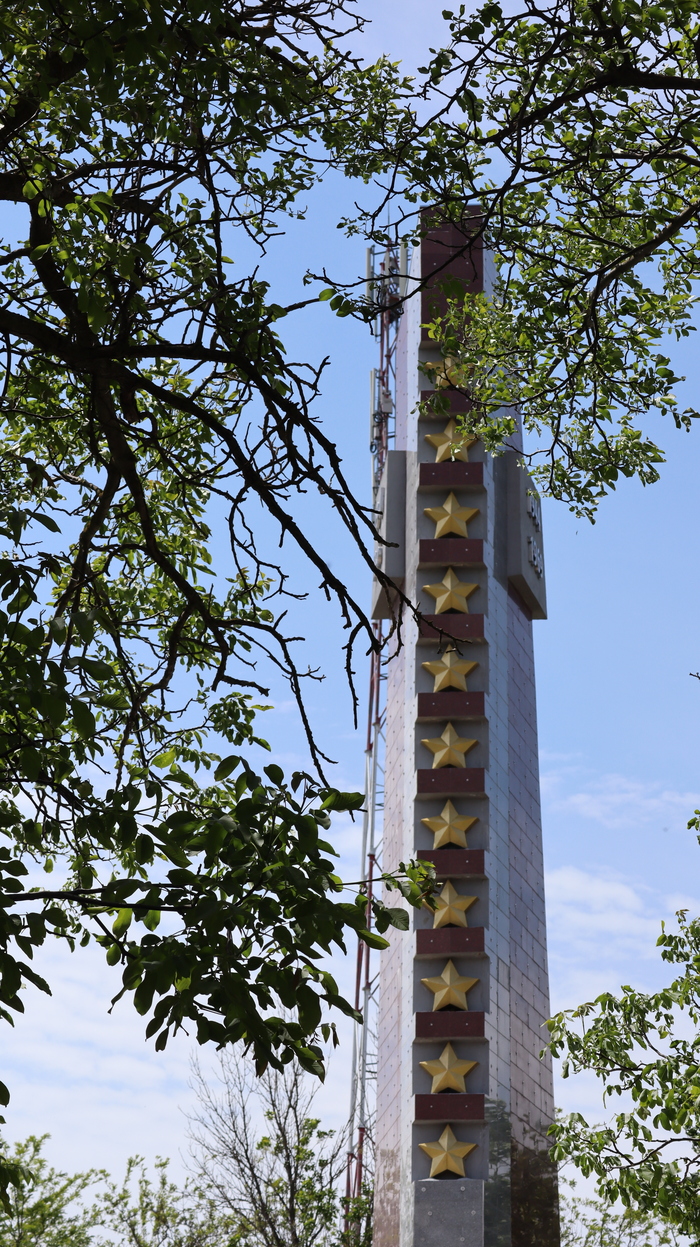 На гранитной плите обелиска высечена информация о подвиге 11 гвардейцев и их имена.