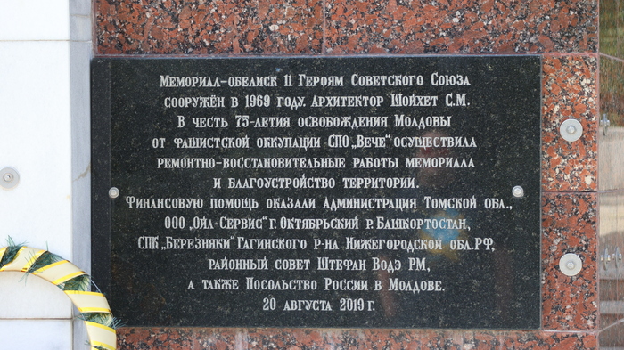 В 1969 году к 25-й годовщине освобождения Молдавии от немецко-фашистских захватчиков вблизи села Раскаецы Штэфан-Водского района был возведён Мемориал воинской славы, посвященный одиннадцати Героям Советского Союза. Уникальный случай в истории Великой Отечественной войны – присвоение звания Героя Советского Союза 11 гвардейцам за один бой. Автор Мемориала - известный молдавский архитектор Семен Шойхет. На взметнувшемся в небо обелиске, выполненном в форме штыка, 11 звёзд – но числу Героев.