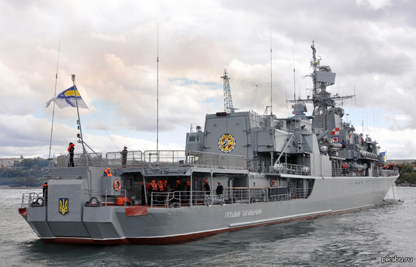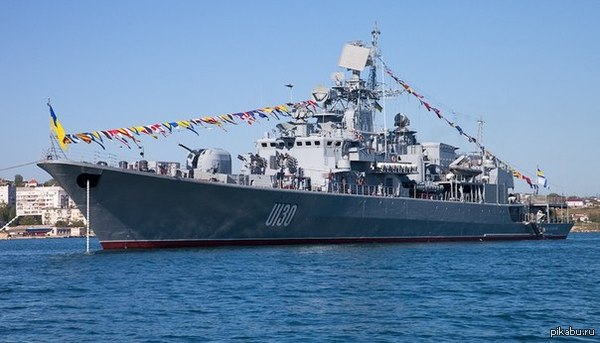 1 марта 2014 года член комитета Совета Федерации РФ по международным делам Игорь Морозов заявил, что корабль перешёл на сторону России и поднял Андреевский флаг. Сообщения были опровергнуты министерством обороны Украины. При прохождении кораблём пролива Босфор на нём были подняты флаги ВМС Украины и государственный флаг Украины. Под этими же флагами он 5 марта прибыл в Одессу.