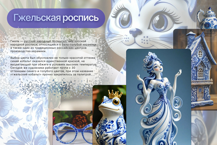 Мотивы: Царственные розы (знаменитая гжельская «агашка»), пышные цветочные гирлянды, изящные птицы и трогательные жанровые сцены из народной жизни.