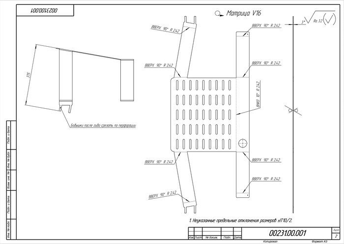 Изделие с точки зрения имеет небольшие технологические хитрости. Поэтому на развертке я добавил вспомогательные упорные бобышки, которые впоследствии удаляются.