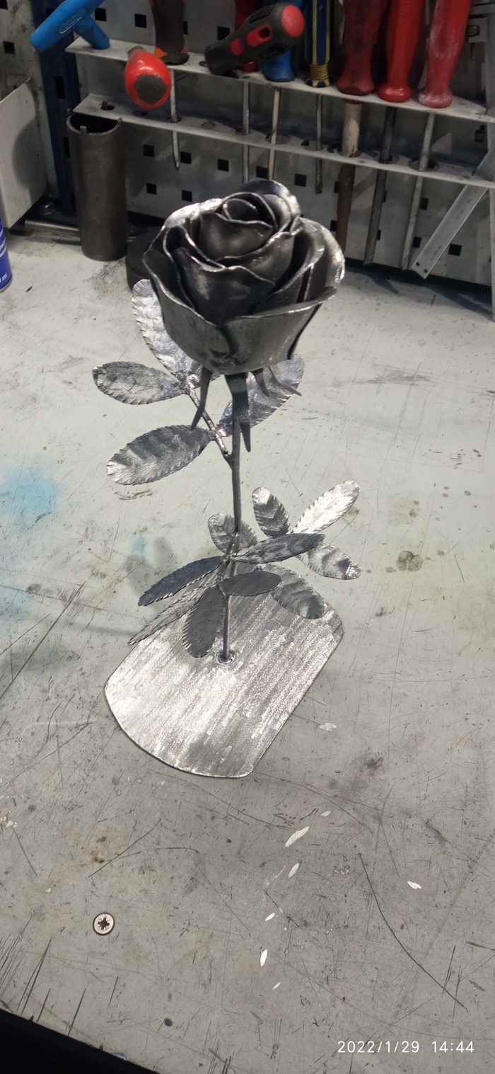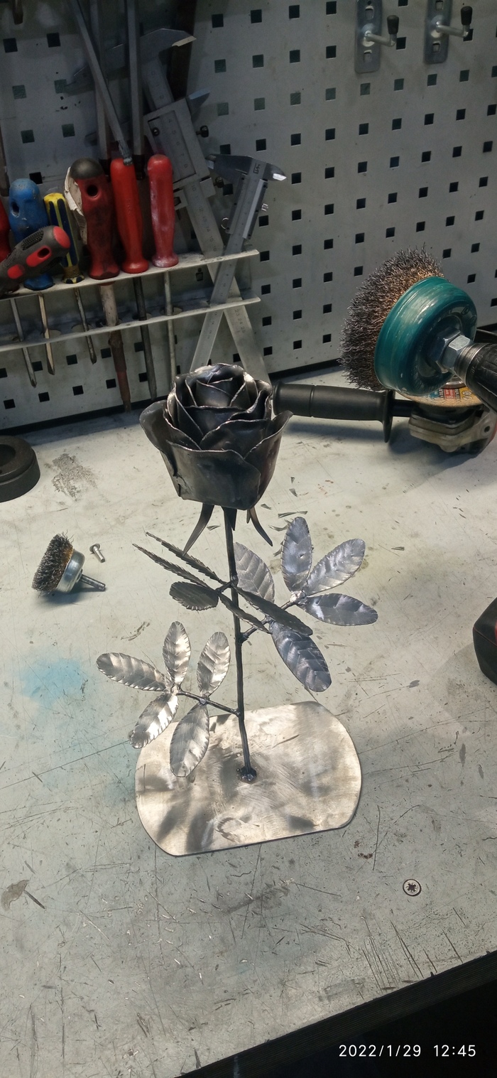 Для изделия выбрал холоднокатаный листовой металл толщиной 3 мм. Это необходимо чтобы консольные ножки не играли и масса подставки была большой. Получилась вот такая небольшая табуретка с наклоном и перфорацией.