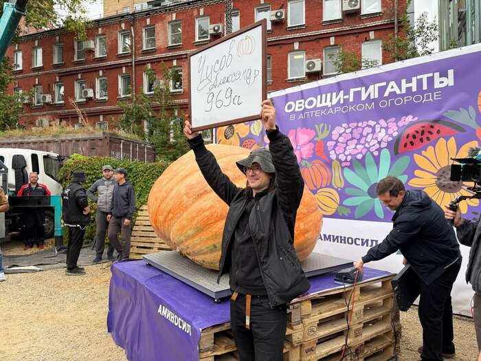 МОСКВА, 19 сентября. /ТАСС/. Фермер-любитель из Подмосковья Александр Чусов установил рекорд России по выращиванию самой большой тыквы. Стрелка весов на контрольном взвешивании в ботаническом саду МГУ "Аптекарский огород" остановилась на отметке 969 кг, передает корреспондент ТАСС.