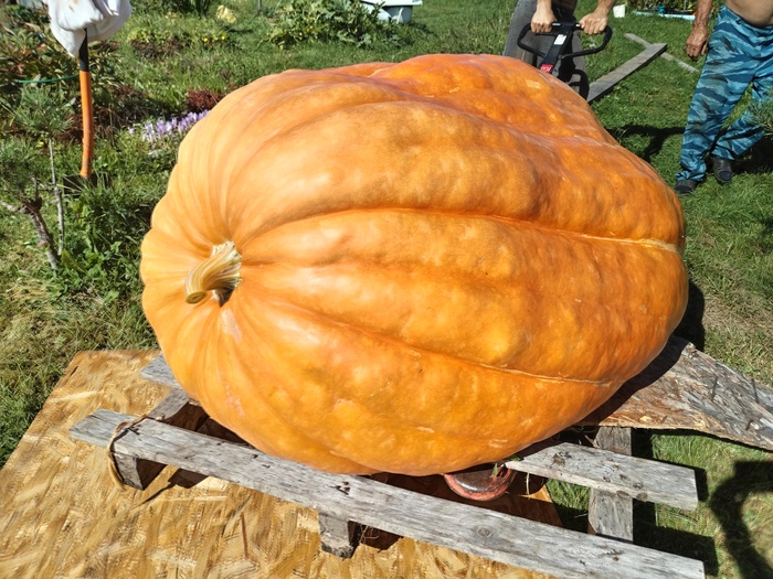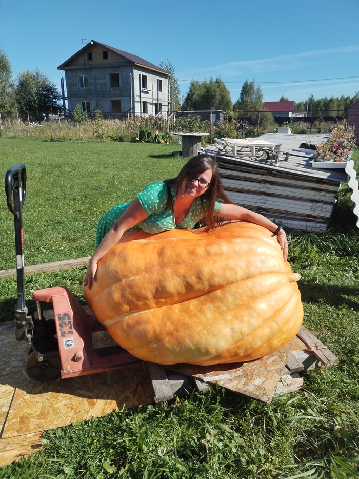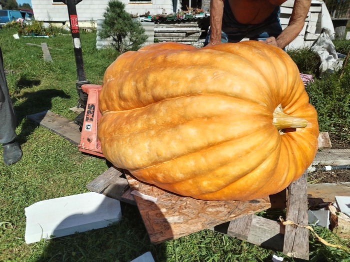 Не скрою, что я стал волноваться еще задолго до взвешивания. Хоть расчетный вес самой большой тыквы был 823 кг, я все равно понимал, что фактический вес может быть меньше. К тому же уже много где говорилось, что вес тыквы будет больше 800 кг и это добавляло чувство ответственности. Но потом я увидел, как 4 грузчика приподняли мою тыкву (есть на видео) и настроение мое улетучилось вовсе. В голове не укладывалось, как они вчетвером смогли ее поднять. Да и сами грузчики потом ходили и уверенно говорили, нет в ней такого веса, ибо они не смогли бы ее поднять. В голове я уже представлял картину, как взвешивают мою самую большую тыкву, на весах вес в районе 600кг, вся публика поворачивается ко мне и кричит "позор!". Причем позор был бы нехилый, ведь на установление рекорда приехало немалое количество представителей СМИ.