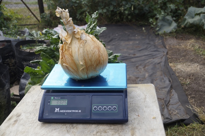 Хоть итоги всем уже известны, я думаю, что история еще не закончена и нужно вернуться немного назад во времени. Последняя половина августа шла довольно вяло, все растения практически выросли и добирали уже совсем немного. Я прекратил подкормки, но поливать продолжал. Тыквы уже росли примерно по 2-4 кг в сутки и ожидать большего от них в это время уже не приходилось. Я стал постепенно готовиться к вывозу всех овощей на выставку, разобрал парник с арбузом и луком. На тот момент у меня оставалось две луковицы, которые росли. Одна из них весила 3060 грамм, а другая аж целых 3325 грамм и это новая самая тяжелая луковица в стране.