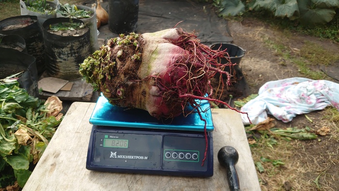 Затем я решил извлечь свёклу. Я ожидал, что она будет весить более 10 кг, но ошибся и ее вес составил 8206 грамм. Немного расстроился, но в целом она все равно огромная.
