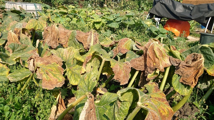Кусты гигантских тыкв в конце августа выглядели уже неважно. Особенно куст тыквы 2183.
