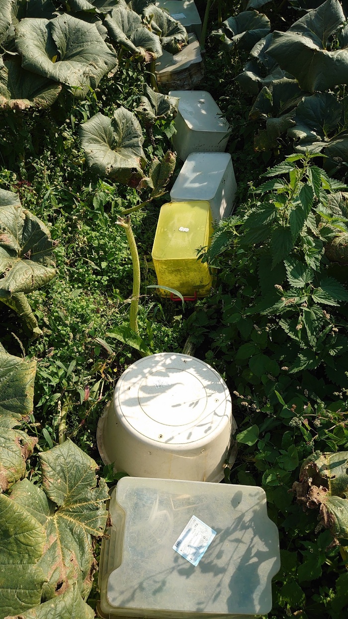 Вообще, чтобы рост тыкв не прекращался я очень тщательно следил за главным стеблем и перед каждым поливом или дождем закрывал треснувшие места, где могло быть загнивание и ставил туда вентиляторы. Всего на участке функционировало около 20 вентиляторов, которые не давали растениям погибнуть раньше времени.