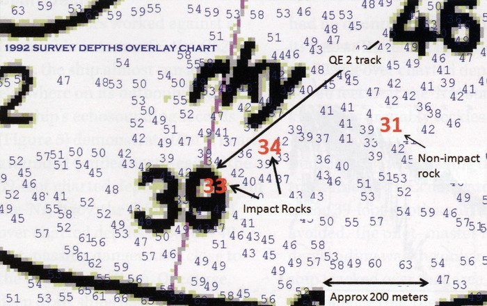 Важно обратить внимание на тщательное расследование, необходимое для определения потенциальных опасностей. Отсутствие ресурсов и времени не может служить оправданием ненадлежащего исполнения и слабого внимания к сложившейся практике. NOAA имела возможность исследовать и определить мере глубину этой отмели в 1939, 1949, 1959, 1969, 1979 и 1989 годах. Однако этого не случилось вплоть до посадки на мель лайнера в 1992 году, принесшей ущерб в 20 млн. долларов США. Тогда задача была решена, и мелководье с глубиной 9,1 метра было картографировано правильно. Если бы эта информация была доступна, лоцман «QUEEN ELIZABETH 2» избежал бы этого района.
