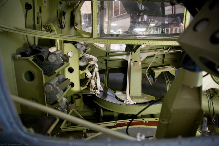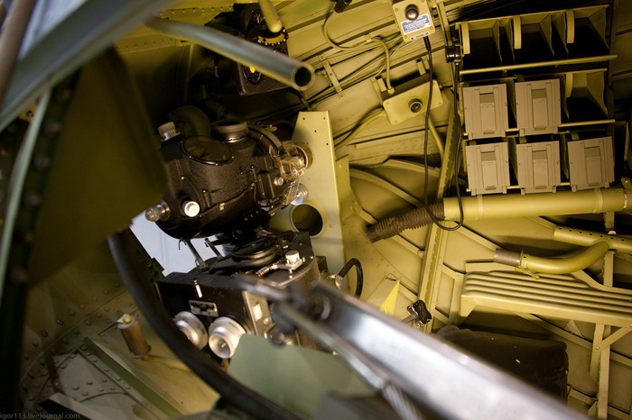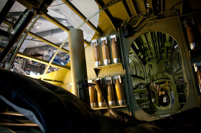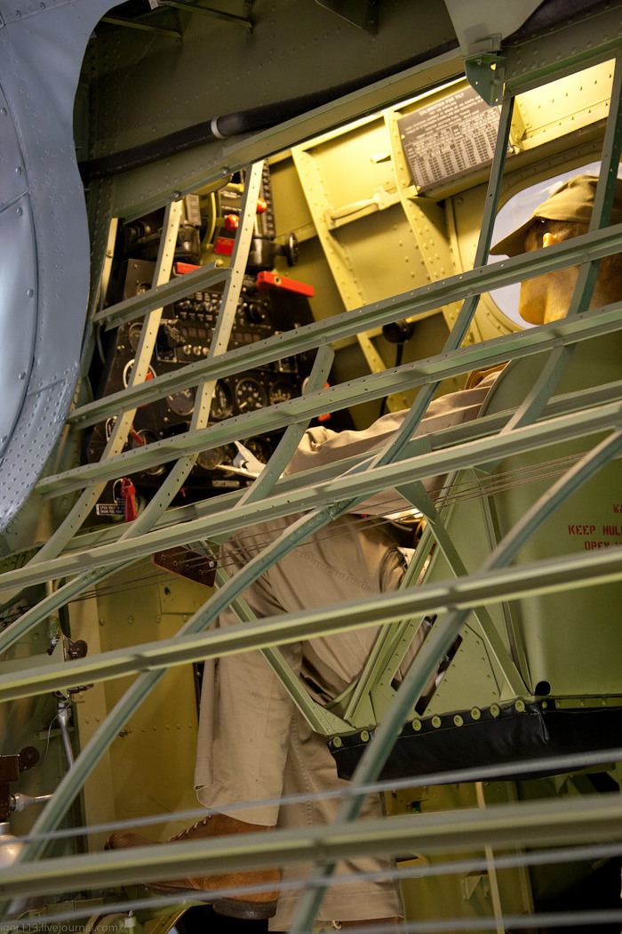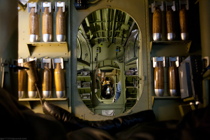 Вид через весь самолет ,от хвостового отсека с осветительными бомбами до кабины пилотов.