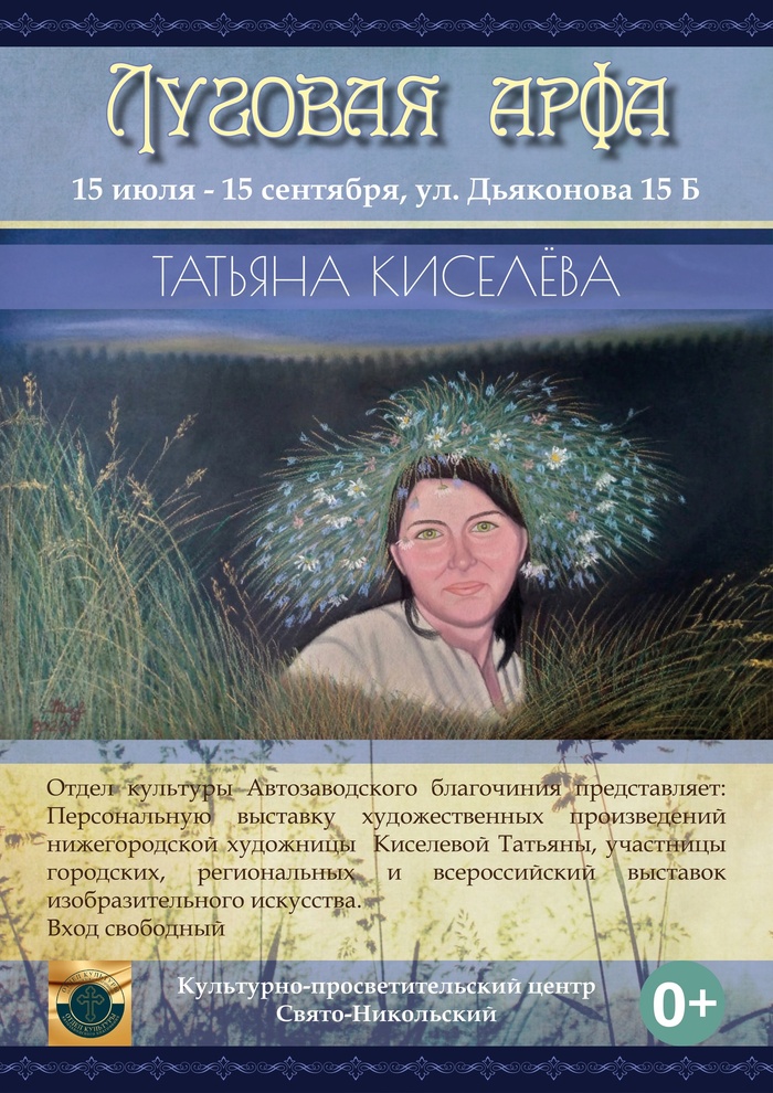 «Луговая арфа» - персональная выставка художественных произведений нижегородской художницы – Киселевой Татьяны, участницы городских, региональных и всероссийских выставок изобразительного искусства.