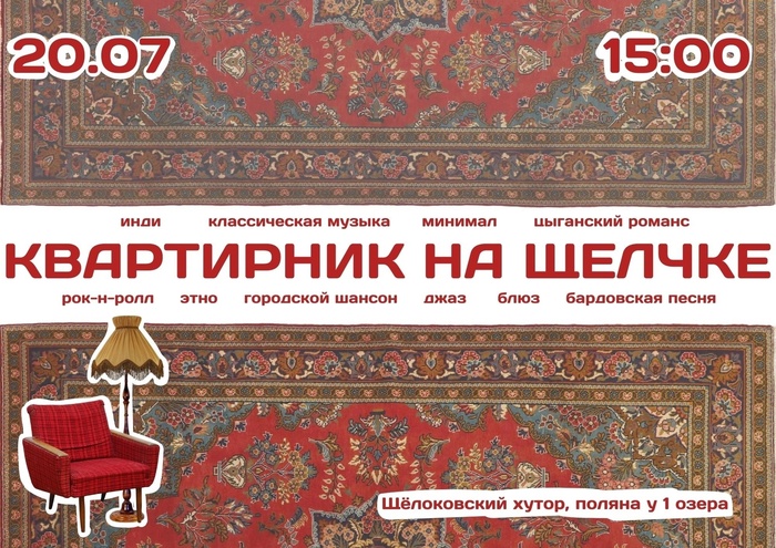 Всех меломанов и поклонников отдельных жанров приглашаем в гостеприимную гостиную под открытым небом. Начало концерта в 15:00. Вход свободный.