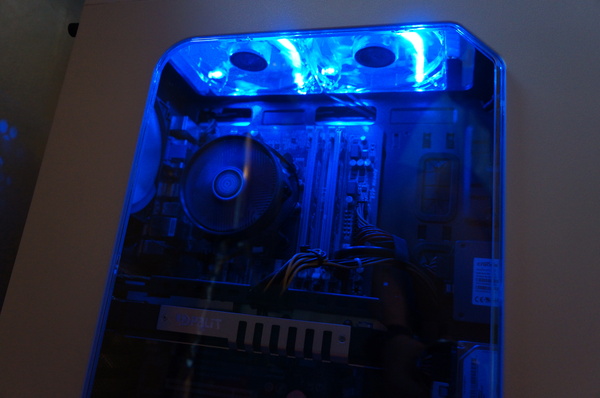Один из крутых бонусов это 5(!) тихих вентиляторов 120мм. Воздух забирается спереди и выдувается назад и наверх. 2 верхних кулера с подсветкой.