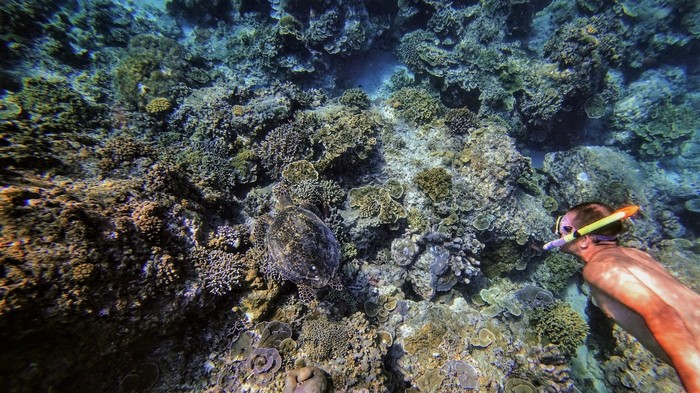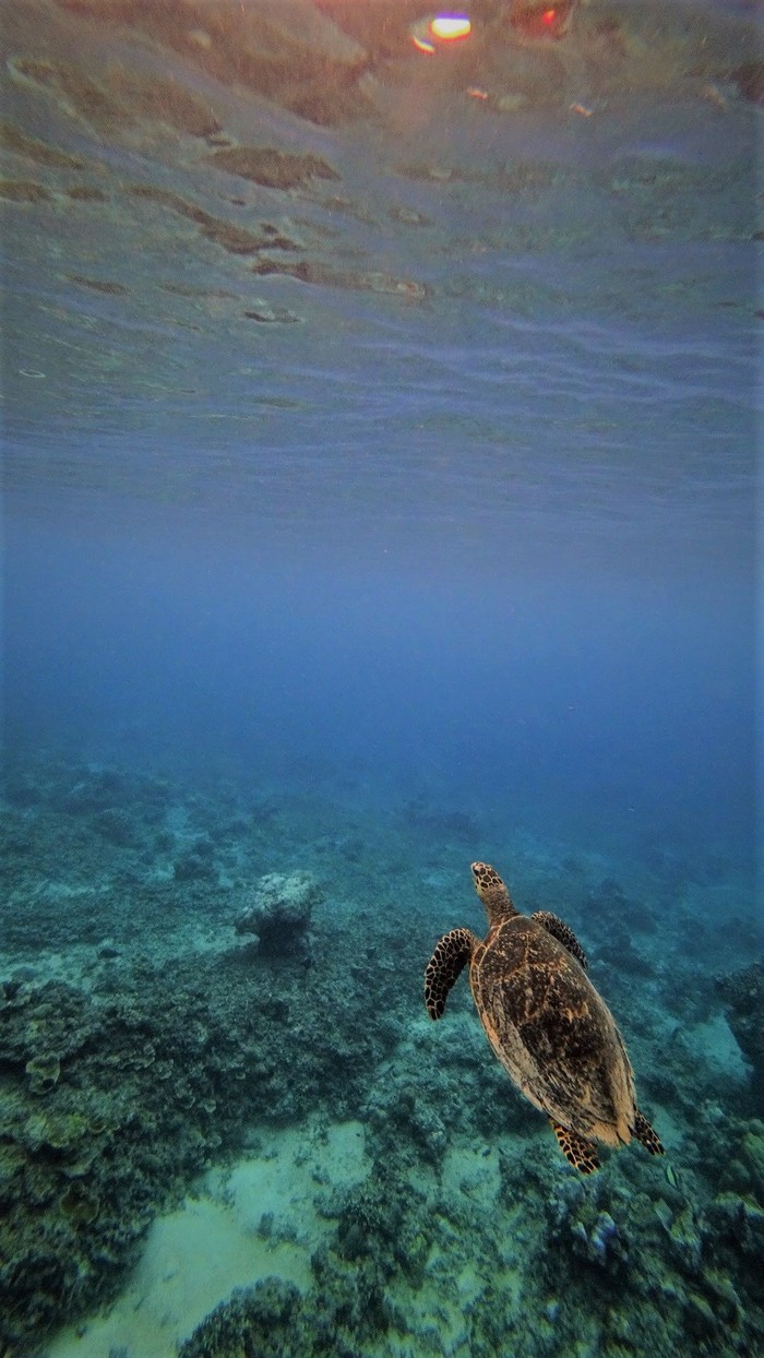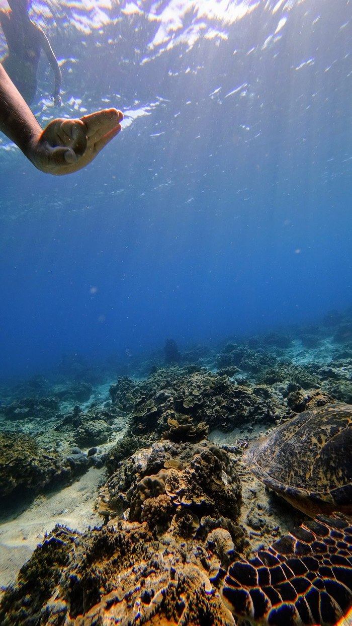 Надев маску и ласты, я погрузился в воду и сразу увидел разноцветные кораллы и множество тропических рыб. Но главное — рядом спокойно плавали морские черепахи! Они были невероятно грациозны и совсем не боялись людей, позволяли подплывать близко и наблюдать за ними в естественной среде.