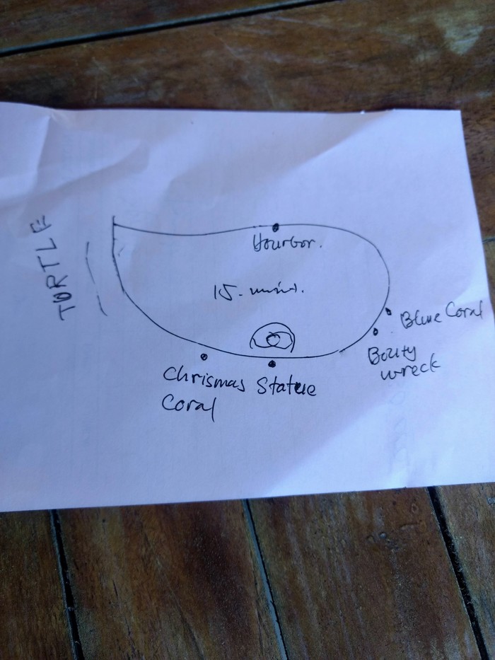 С одной стороны, можно взять экскурсии. Ещё можно прочитать о месте в интернете. А можно просто поддержать разговор с менеджером кафешки у порта. Он (на видео рисует нам карту), родился и вырос на Гили Мено.