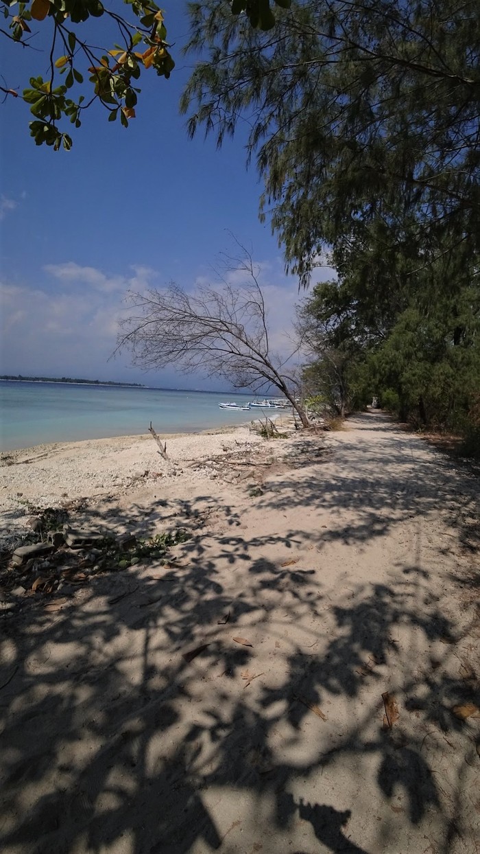 Там три острова (эйр, мено, траванган) рядом и они очень маленькие. Настолько маленькие, что меньший можно обойти за час. Средний, он же Гили Мено, полтора-два часа пешком. Гили - у местных значит "маленький остров". Всё что рядом с Ломбоком мелкое - это гили.