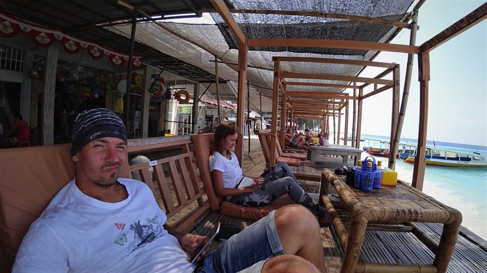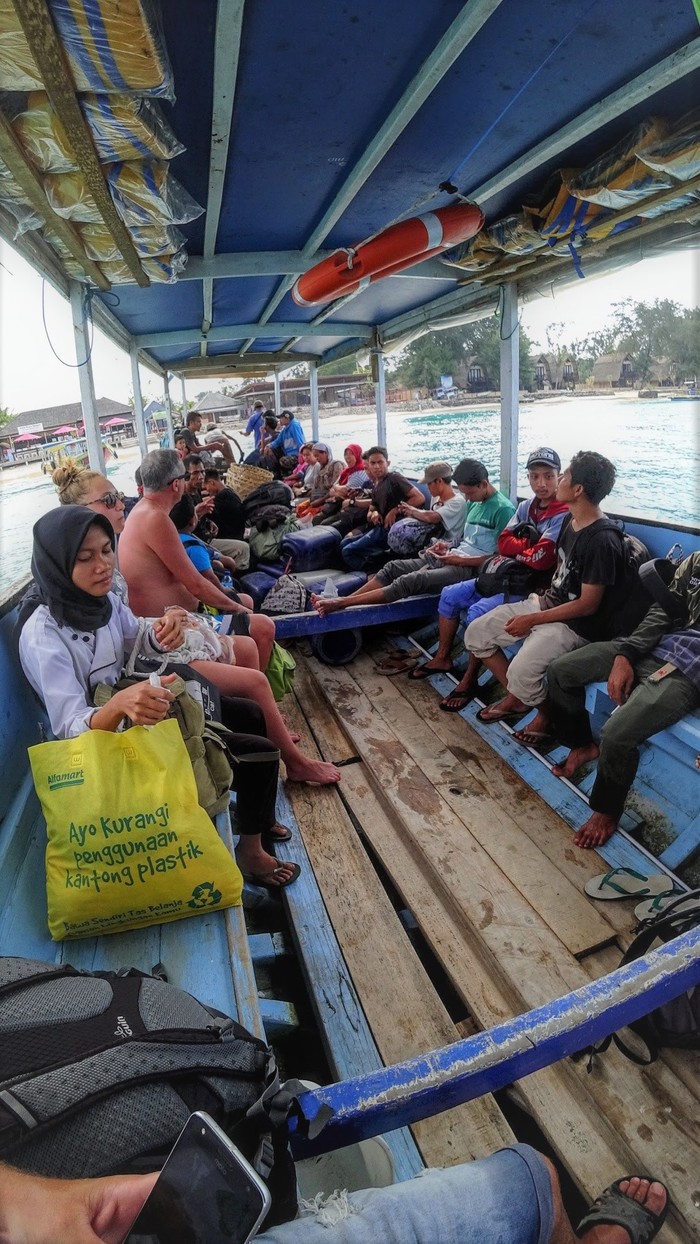 Есть много вариантов добраться на эти острова. В том числе с Бали. Но, Ломбок рядом и оттуда это меньше часа на "паблик боут". Они ходят с Ломбока 2 раза в день, на Ломбок - тоже. Обратно это утром (около 8 часов) и днём, ближе к 14-15 часам. Лучше прийти заранее, тем более что есть где вкусно подождать. Стоят такие лодки чуть больше доллара с человека. Или 19 долларов лодка побыстрее.