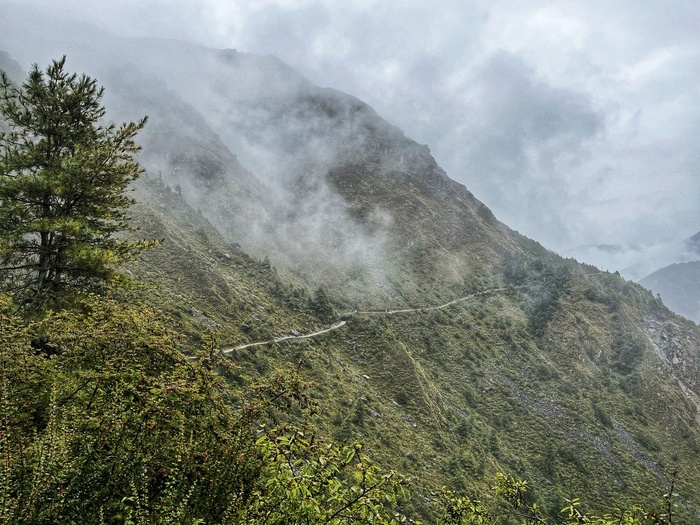 И только я выдвинулся в деревню Кумджунг, как Будда меня порадовал и поменял туман на солнышко. Но туман держал недалеко, как бы наготове, если вдруг я накосячу где-нибудь.