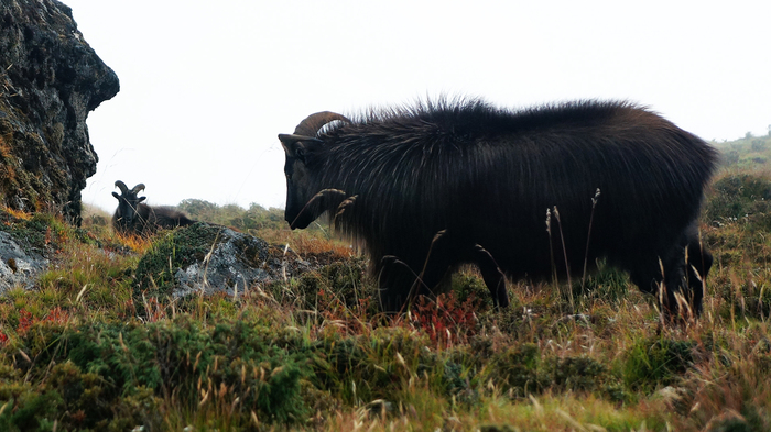 Но, благодаря туману, мне удалось вблизи увидеть небольшую группу Гималайских таров. Мне очень повезло, обычно эти ребята близко к себе не подпускают и держатся подальше от людей и в целом от туристических троп. Но тут, я, кажется, застал их врасплох. Правда на камеру успел сделать только один кадр, звук затвора их напугал и они тут же разбежались.