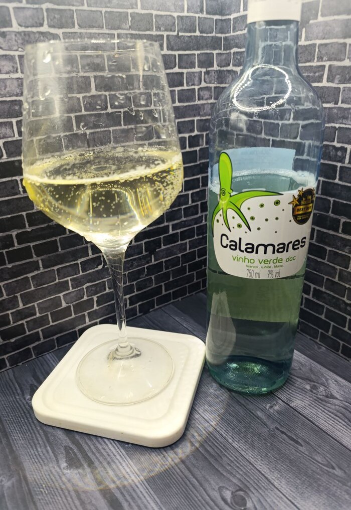 Я не смогла пройти мимо бутылки с таким милым кальмаром. Это вино я вижу впервые, привезли его к нам из Португалии, оно имеет чуть уловимую газацию, полное отсутствие аромата и вкуса спиртов, слегка сладкое, пьется как компотик, лучше употреблять охлаждённым. Осталась в восторге, я вернусь за ним.