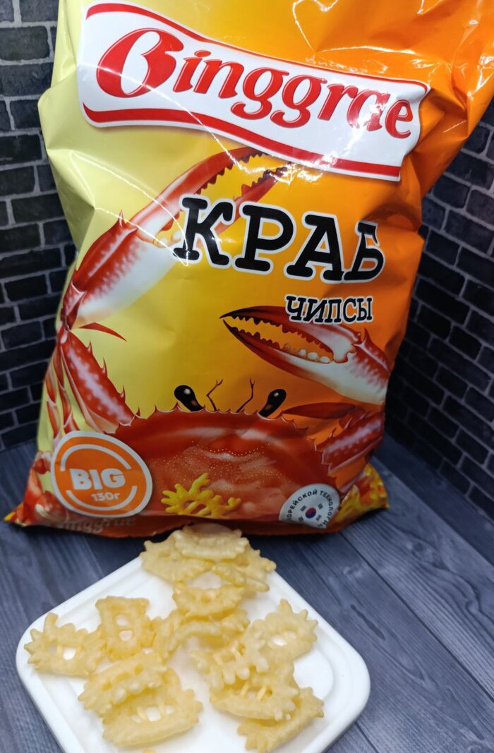 Эти чипсы я взяла специально чтобы рассказать о них тем, кто ещё с ними не знаком. Это снеки из моего детства, пожалуй, самые любимые, сейчас как и тогда они производятся в Новосибирске. Я периодически их беру, обычно пачки по 50 гр., а тут большой пакетище, но это повлияло на вкус, как будто специй не доложили. Они такие же солёные, с крабовым ароматизатором, всё так же приятно-воздушные и весело хрустящие, но что-то во вкусе пошло не так, он бледноват и быстро теряется. Но буду думать что мне не повезло с пачкой, брать их точно не перестану, а вам рекомендую попробовать.