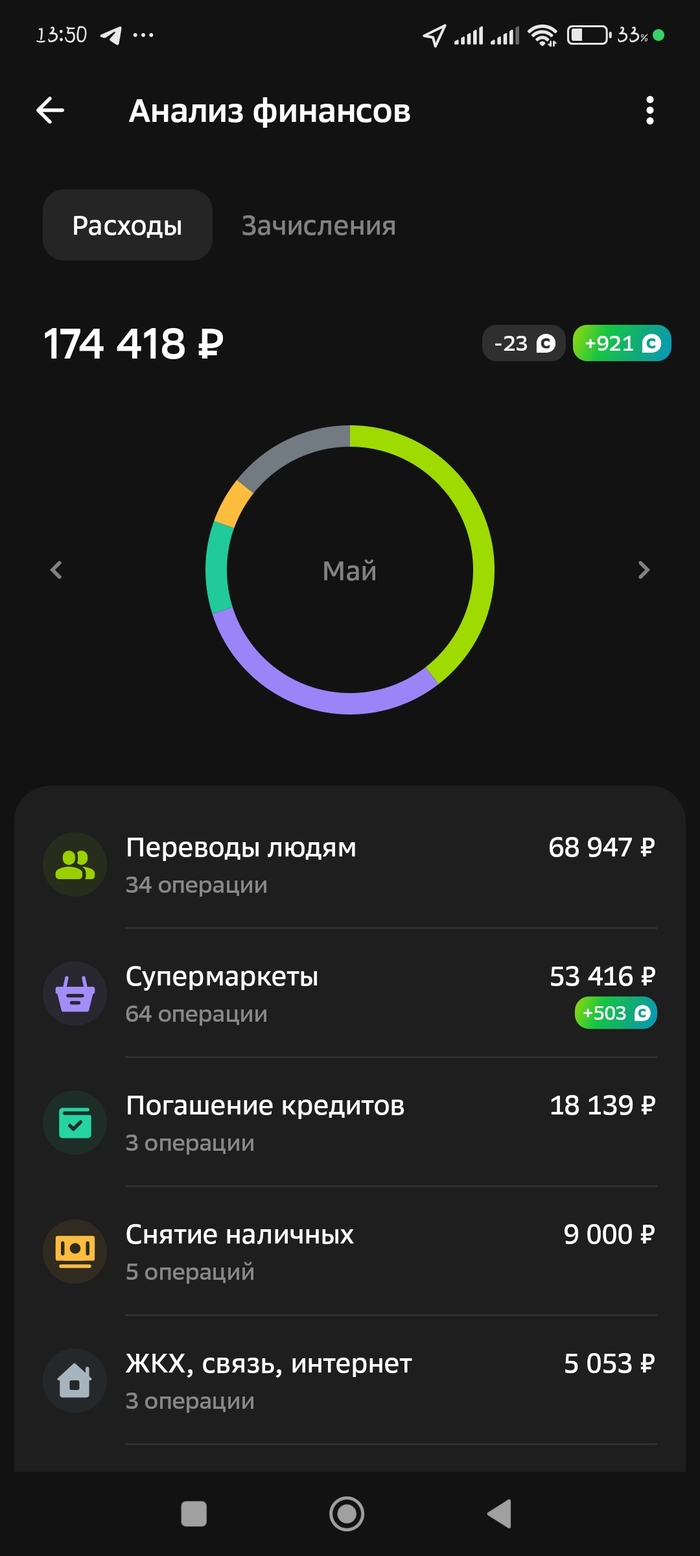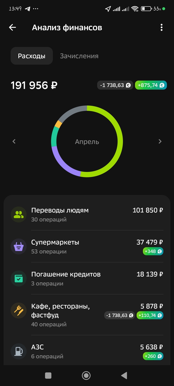 Ну и что бы голословным не быть, фото расходов карты по месяцам.