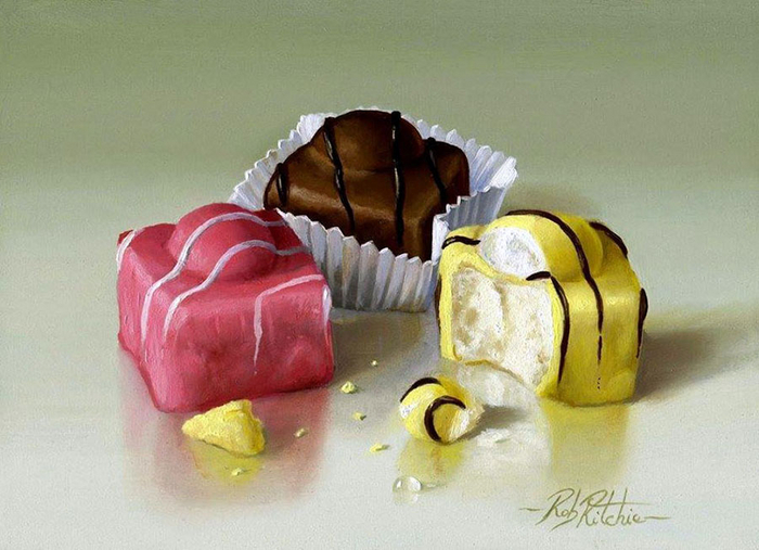 Роб Ричи создает великолепные натюрморты в стиле гиперреализм сочетающие в себе гармонию цвета, тени и композиции. Картины настолько натуральны, что кажется это высококачественная фотография, однако это картины маслом.