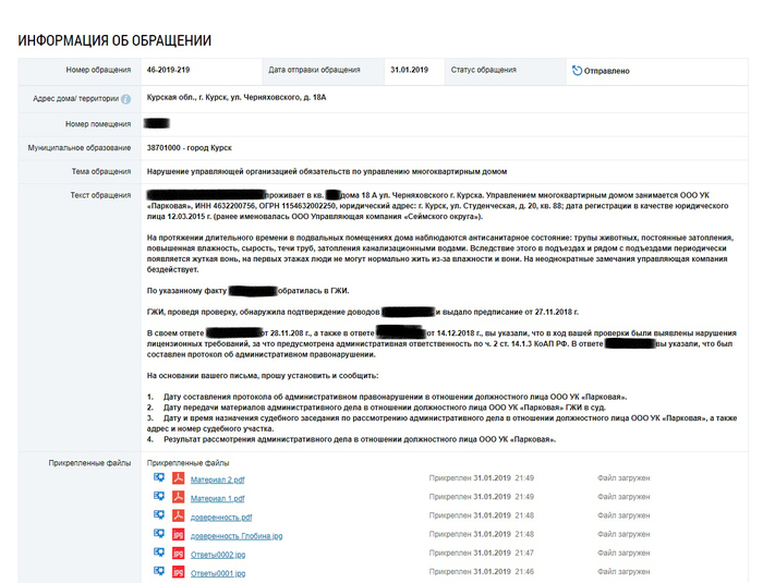 Итак, первым нашим шагом было обращение в ГЖИ Курской области и Роспотребнадзор.