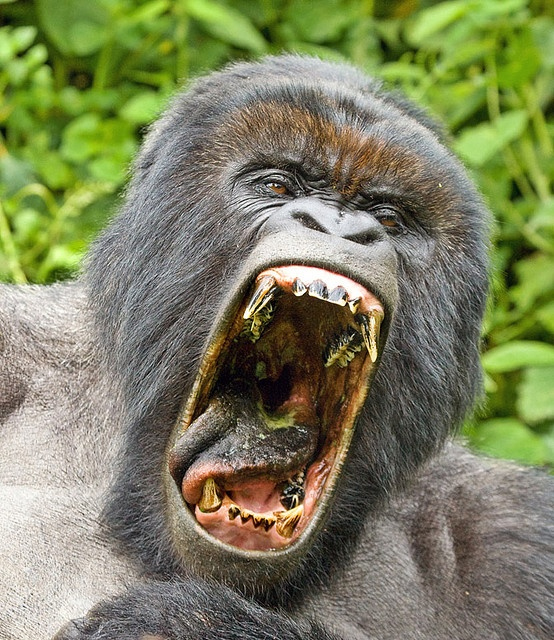 К счастью для своих соседей, гориллы вегетарианцы. Но для защиты своей группы пускают в ход не только лапы, но и мощнейшие челюсти, способные перекусить практически что угодно.