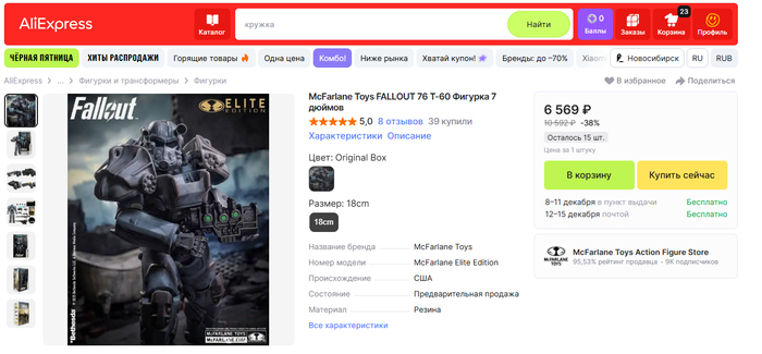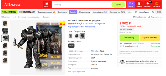 Обещал рассказать о том, почему так дорого стоит подобная фигурка. В среднем она полностью готовая стоит около 10 т.р на разных маркетплейсах. Для многих это совсем недешево, тем более вы можете найти неплохие фигурки по Fallout и подешевле. Взглянем в сторону Алиэкспресс.