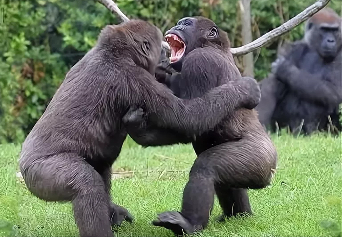 4. А вот самки горилл, напротив, часто вступают в единоборства.