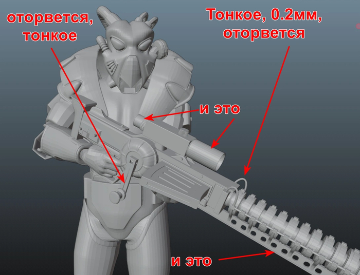 3D модели делают под разные задачи. Под анимацию, под игры, под 3D печать. Каждая из задач имеет свою специфику и одна из главных под изготовление на 3D принтере - это толщина. Давайте посмотрим на винтовку Гаусса.