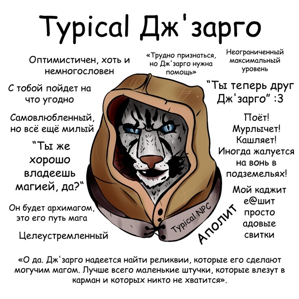 Довакин - суровый мужиковый мужик, чуть эмоциональнее мостовой под ногами, а Дж'зарго - комедийный сайдкик, вечно врывающийся с двух ног и огнём в лапах Око Ужаса Хермеусу Море, которого надо спасать со всей силы!))