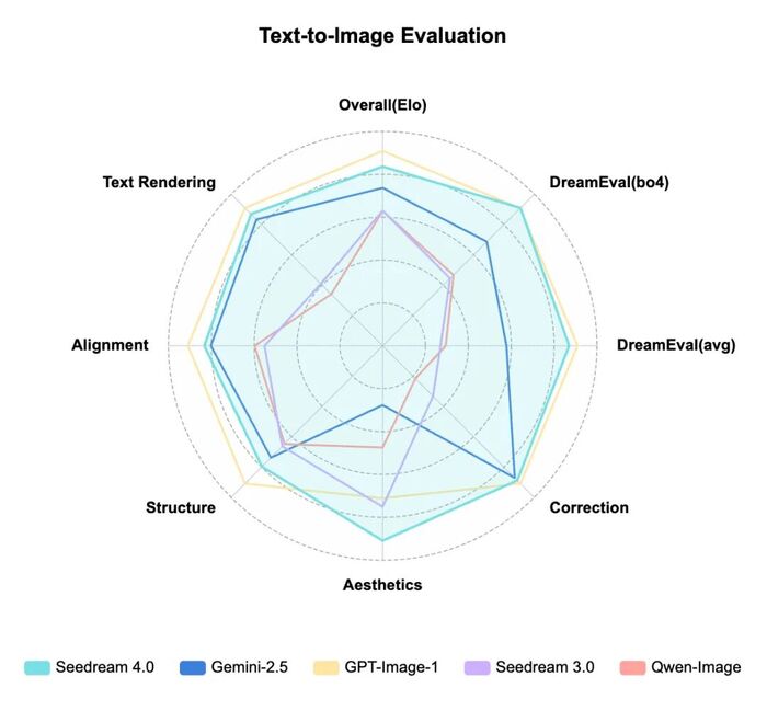 В области генерации текста в изображение Seedream 4.0 демонстрирует комплексные улучшения по сравнению с предыдущей версией. Модель отличается превосходной точностью выполнения инструкций, структурной стабильностью и визуальной эстетикой, улучшенной визуализацией насыщенного текста и более глубоким пониманием сложной семантики. По сравнению с другими моделями, такими как GPT-Image-1, Seedream 4.0 сохраняет заметное преимущество в текстуре, освещении и цвете изображений, создавая более впечатляющие и приятные с эстетической точки зрения результаты.