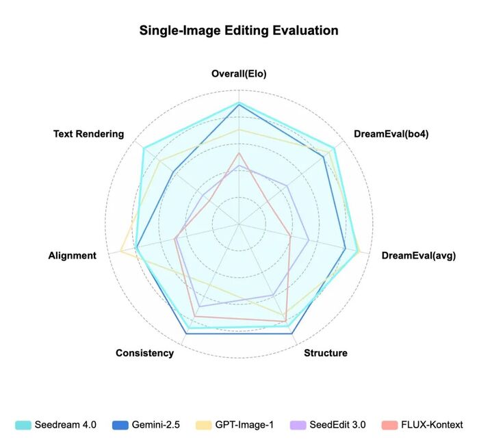 По результатам тестирования на MagicBench, бенчмарке для оценки человеческого потенциала, разработанном командой ByteDance Seed, Seedream 4.0 занял лидирующие позиции по всем показателям при преобразовании текста в изображение и редактировании изображений, а также получил наивысший рейтинг Эло при редактировании одного изображения.