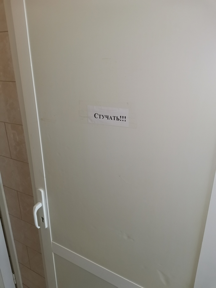 СТУЧАТЬ!!! Поняли, да?? Только вот соль в том, что стучать смысл есть только в эту дверь. Две другие даже не закрываются. То, как там "замок" сымпровизирован на первом фото сложно назвать "закрывает".