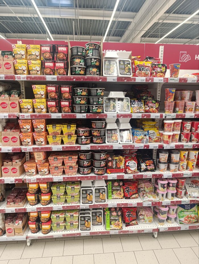 Давайте возьмём перерыв и изучим ассортимент лапши в магазине, фото было сделано специально для любителей этой продукции.