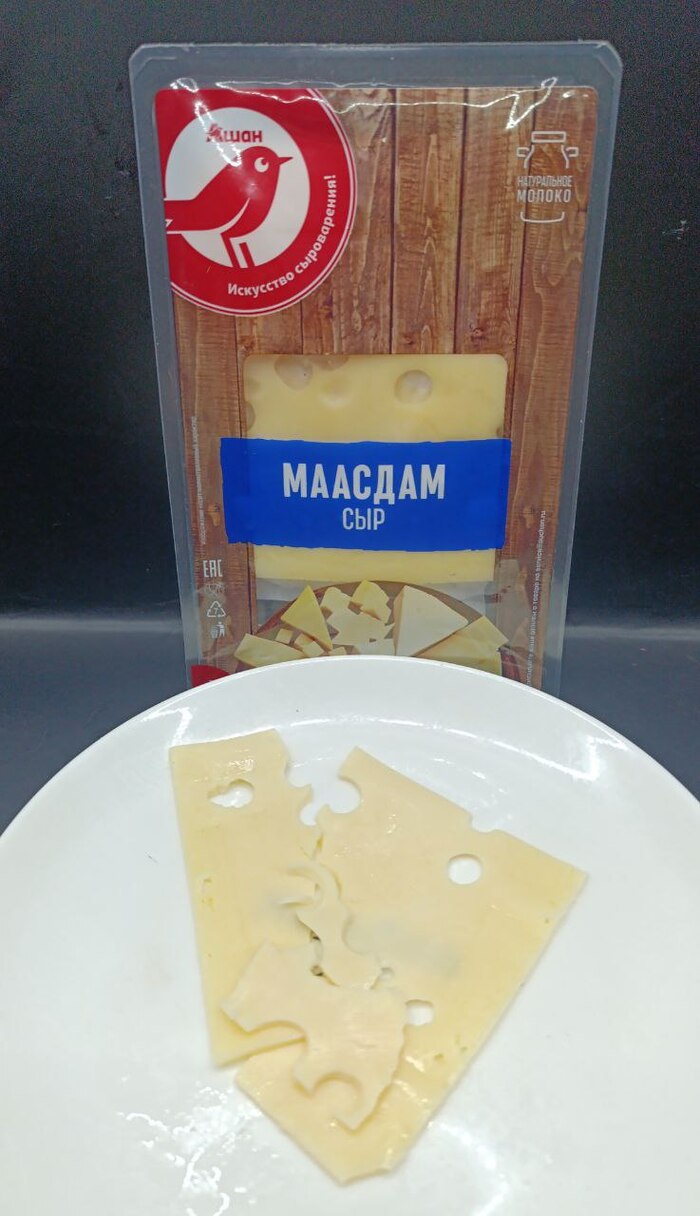 Ну как вам сказать... Вот есть сыр "пластиковый" сыр, вообще безвкусный и это плохо, а есть сыр со вкусами, да не теми, что тоже - так себе. Здесь всё смешалось, и "пластиковая" консистенция и вкус вроде есть, но не маасдамовский, а немного прогорклый с кислинкой. Это не ужасно, но и не хорошо, не рекомендую, но если уже купили, то положите в пиццу, не испортите.