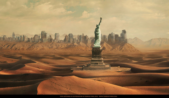 В результате некой катастрофы вся Северная Америка (а может быть, и весь мир) оказалась покрыта слоем песка толщиной в несколько десятков, а то и сотен метров. Замечу, что такая обстановка создаёт довольно интересную атмосферу. На протяжении всего чтения не покидает ощущение вездесущего песка и непереносимой жары. Автор неплохо описал и быт людей, живущих в подобных условиях. Например, он придумал несколько терминов, описывающих разные виды песка, подобно тому, как у северных аборигенов существует множество обозначений видов снега. Однако к миру автора есть и множество вопросов. Совершенно непонятно, как жители добывают себе пропитание. В романе вскользь упоминается мясо кроликов, но как прокормить такое количество кроликов в условиях практически полного отсутствия растений? Да и люди без растительной пищи выжить не могут. Прошло не так много времени с момента катастрофы, чтобы наш метаболизм столь сильно перестроился эволюционно.