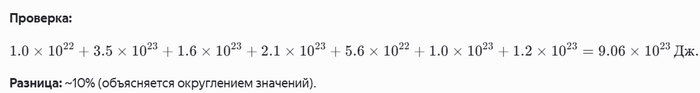 Расчёт энергии: ‒ Масса m ≈ 3,3 × 10¹³ кг.