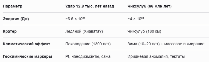Энергия удара (6–7 × 10²¹ Дж): Достаточна для пожаров, цунами, аэрозольной зимы. Недостаточна для сдвига оси, раскола материков или влияния на прецессию (не хватает 9 порядков энергии).