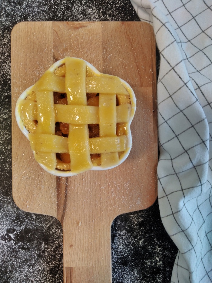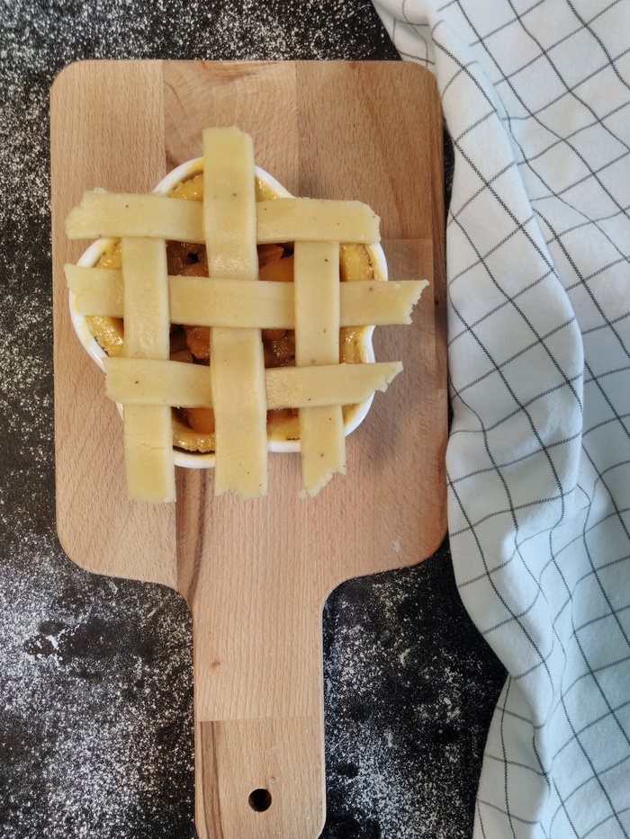 Наполняем пирог ароматной начинкой и накрываем песочной крышечкой