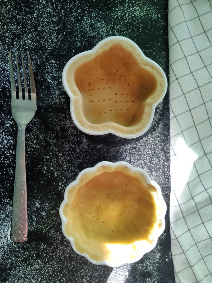 Прокалываем вилочкой дно и отправляем в морозилку на 30 минут, как только пройдет это время ставим наши заготовки в заранее разогретую духовку до 180° на средний уровень до того момента, пока не увидите лёгкий румянец.