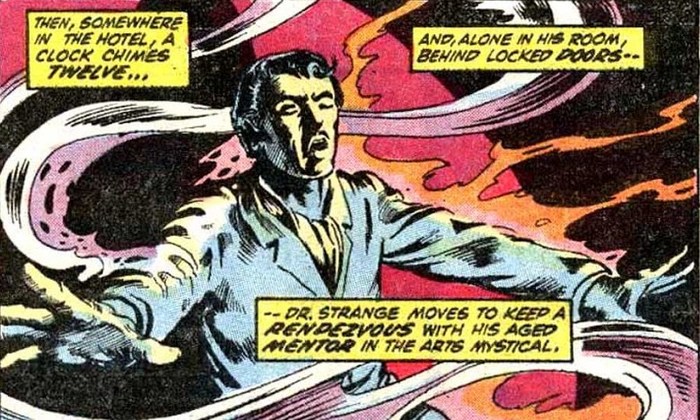У авторов были планы продолжить этот сюжет в комиксе, который Доктор Стрэндж разделял бы с Ледяным Человеком – но этот комикс так и не вышел, Доктор Стрэндж потынялся по комиксам про Нэмора и Халка, основал команду Защитников – и на время поселился в комиксе Marvel Premiere, героями которого в разное время были Железный Кулак, Элис Купер и Доктор Кто. Я пока что сконцентрируюсь на номерах, посвящённых Стивену, поэтому начну сразу с комикса Marvel Premiere #3 за июль 1972 года, с историей и рисунком от Барри Смита (и правками истории от Стэна Ли). Ничто не предвещало беды, был обычный день – но Доктор Стрэндж (более не нуждающийся в маске или фамилии Сандерса, потому что нуивонах) чувствовал присутствие нависшего над ним зла (задумавшись об этом, он чуть не попал под грузовик). Побеседовав с Древнейшим, Стивен понимает – кроме него, Древнейшего, Вонга и Клеи в Святая Святых, его обители, есть кто-то недобрый.