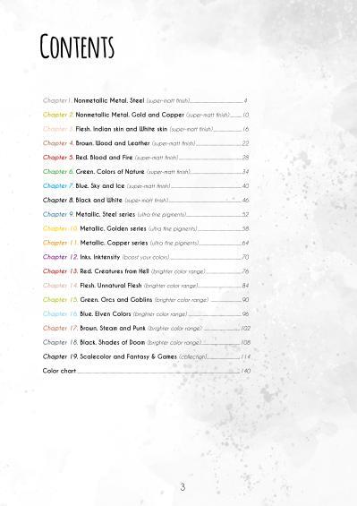 К сожалению, на Пикабу нельзя выделять текст различными цветами. В исходнике название каждого типа красок выделено своим цветом - красный для базовых красок, оранжевый для лейеров, зелёный для проливок и т.д. Здесь они будут просто выделены жирным. По запросам могу высылать PDF файлы