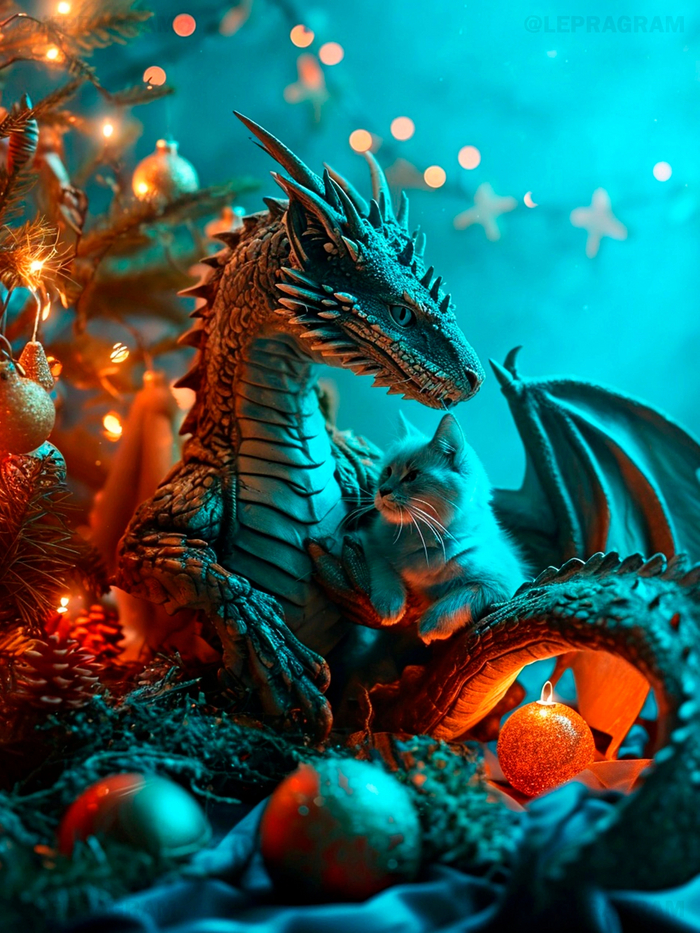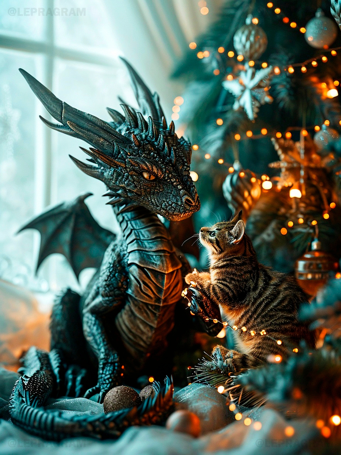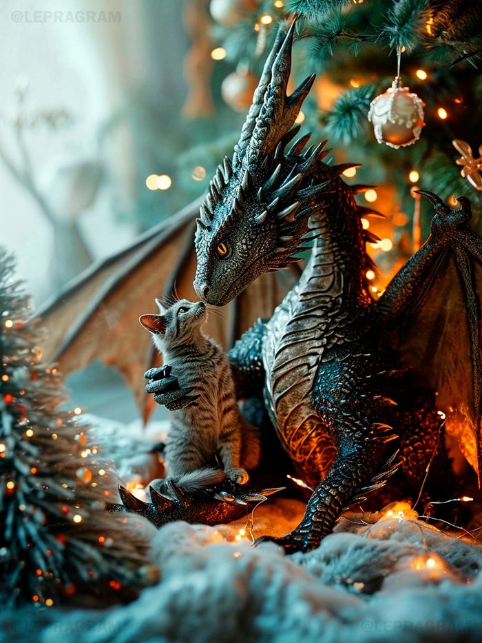 Если Вы иногда нуждаетесь в смене обстановки, как, например, сейчас лето, а хочется вспомнить зимние уютные вечера, то я, как откровенный визуал, предлагаю Вам насладиться великолепной подборкой нейросетевых котиков и драконов. Лично меня атмосфера Нового года переносит в далёкое время моего детство. Так здорово было всей семьёй собираться за одним столом, ждать гостей, с замиранием сердца слушать бой курантов, а потом бежать к ёлке и с нетерпением открывать долгожданный подарок. Помню, как на зимних каникулах играли с папой в хоккей, катались с соседскими ребятами с горки, и как с мамой вместе готовили салатики и всякие вкусности. Этот невероятный запах плотно закрепился в моей памяти. И радости от полученного в лицо снежка было больше, чем боли. А как мы катались на санках по большому склону, а потом уставшие бежали домой сушиться! И ведь приходили только на обед, чтобы после него снова собраться на улице. И ели как можно быстрее. И проверяли вещи на батарее каждые 5 минут, высохли или нет. И время пролетало так, что не успевали наиграться. Казалось, только-только построили снежную крепость или слепили своих снеговиков, как уже стемнело. Любимая зимняя игра из детства так и осталась - "Царь горы". Но и дома было не менее интересно, особенно, готовиться к празднику. Как мы вырезали из бумаги снежинки и клеили их на окна. Как делали бумажные гирлянды и фонарики из цветной бумаги. Как наряжали ёлку, бережно разворачивая из газет стеклянные игрушки. Я до сих пор храню эти тёплые воспоминания, как одни из самых душевных того времени.