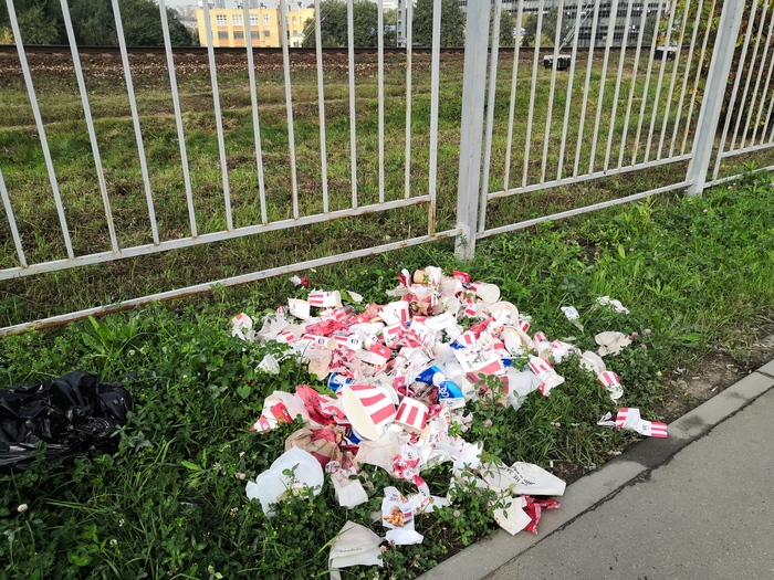 Вы только посмотрите что о нас думает американская компания KFC? Они считают, что мусор можно выбрасывать где угодно. Неужели стоимость вывоза мусора настолько подорожала? Хотят сэкономить? Пусть у себя дома экономят.